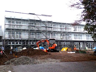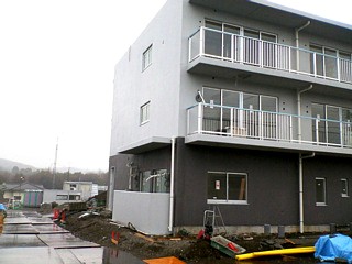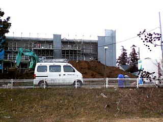▲新年第一号の写真です。分かり辛い写真で恐縮ですが、2階部分の外壁もコンクリートで固められました。以前の写真と見比べてくだされば分かるかもしれません(2007/1/14撮影) |