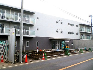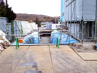 | ▲道路に面した柵が取れて玄関の様子が見えるようになりました。来週から合宿になるので現場の様子を見られなくなってしまいますが、合宿から帰って来る頃には外部の仕上げが更に進んでいることでしょう(2007/3/10撮影) |