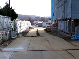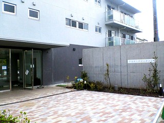 ▲建物の周りも工事が進められています。建物の入り口の工事、完成予想図によると植え込みができるようです