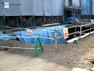 ▲右に目を転じてみると新たに大きな穴が掘られているのを見つけました。この穴はけっこう深いです。何をする穴なのか、こちらも不明です(2007/3/4撮影) |