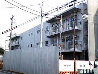▲表側の足場が取れて建物の外観が露わになりました。手摺りの取付けをしているのが見えます。来週になれば裏側の足場も取れるらしいです(2007/3/10撮影) |
