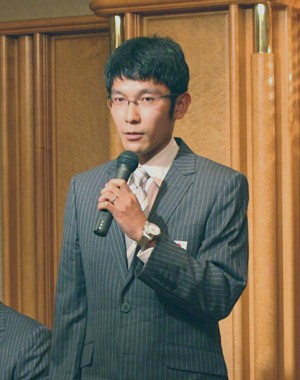 | ▲佐藤敦之OBと竹澤健介の決意表明▲ |