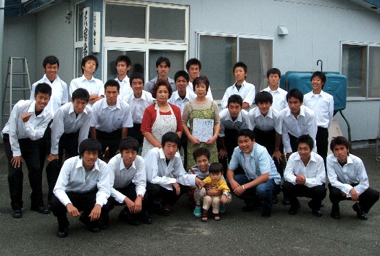 合宿前半(8/12〜21)でお世話になった、おかした旅館さんの前にて記念撮影
