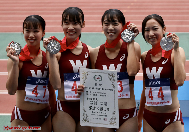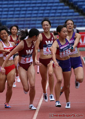 女子4×400mR決勝 10月18日(日)14時40分 早稲田大学(村上-小山-関本-津川) 3分37秒15(2位) 早稲田新記録