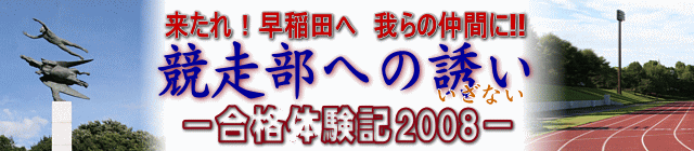 昨年度から始まりました当企画ですが、競走部を希望する未来の後輩となる皆さんに、部員の"生の声"を聞いていただき参考にしていただければと考え、本年度も在籍部員の何名かにインタビューをして、2008年版「合格体験記」をまとめました。