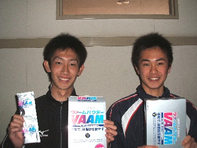 新入生の高橋和也(左)と斉藤太一(右)です。I.H1500mの2位と8位。お互いライバルです!!