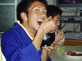 いかなごくぎ煮をおいしくほおばる杉山選手(4)