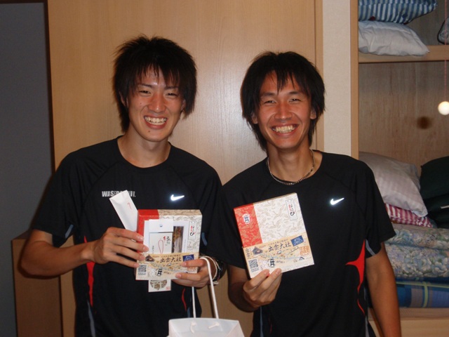 3次合宿でお世話になりました花泉町の方々からの差し入れということで、みんな大変喜んでいました。このようなみなさんの応援があってこその早稲田大学競走部だと改めて考えさせられました。全日本駅伝、箱根駅伝と出雲駅伝以上の結果を残せるよう、練習に励んでいきたいと思います。