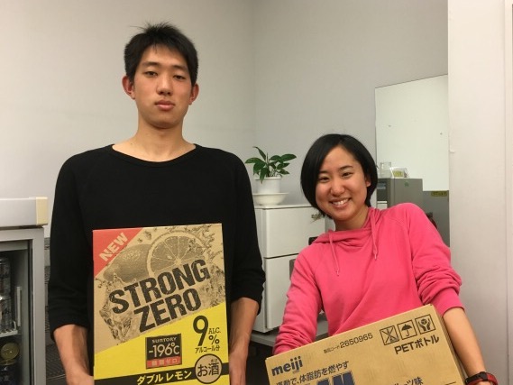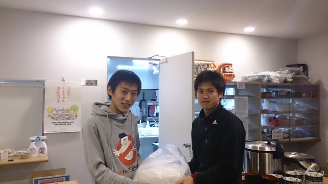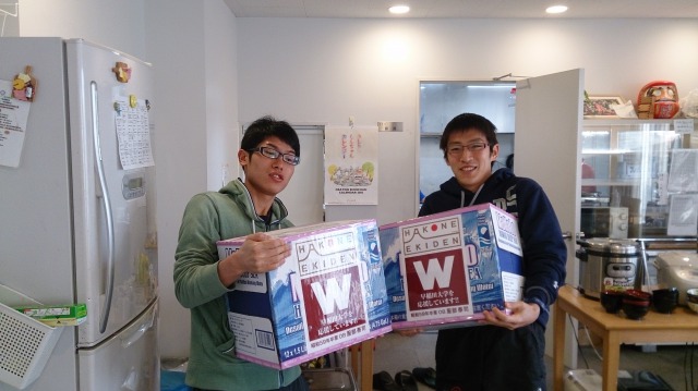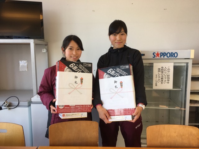 関口直人先輩(平成26年卒)からジュースをいただきました。 「ありがとうございます」